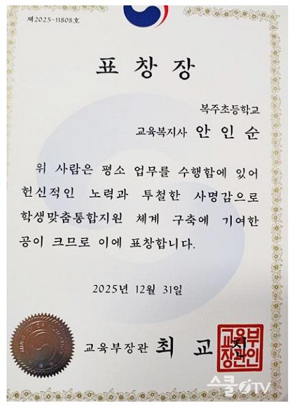 | ¾Èµ¿º¹ÁÖÃÊ ¾ÈÀμø ±³À°º¹Áö»ç, ±³À°ºÎÀå°ü»ó ¼ö»ó |