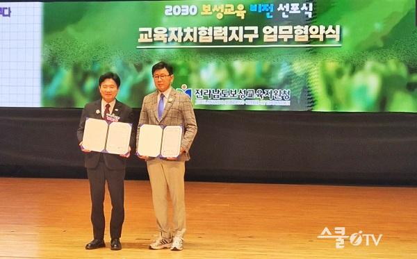 Àü³²±³À°Ã»°ú º¸¼º±ºÀº Áö³ 1¿ù 23ÀÏ ¿ÀÈÄ 1½Ã º¸¼º±º¹®È¿¹¼úȸ°ü¿¡¼ ¿¸° ¡®2030 º¸¼º ¹Ì·¡±³À° ºñÀü ¼±Æ÷½Ä¡¯¿¡¼ ¡®±³À°ÀÚÄ¡Çù·ÂÁö±¸ ¿î¿µÀ» À§ÇÑ ¾÷¹«Çù¾à(MOU)¡¯À» ü°áÇß´Ù°í ¹àÇû´Ù.