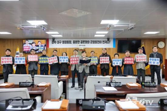 ¿µÁÖ½ÃÀÇȸ ÀÇ¿ø Àϵ¿Àº ¼º¸í¼ ¹ßÇ¥°¡ ³¡³ ÈÄ ¡°µµ¹Î µ¿ÀÇ ¾ø´Â ÇàÁ¤ÅëÇÕÀº Á¤´ç¼ºÀ» °¡Áú ¼ö ¾ø´Ù¡±¶ó¸ç ¡°µµ¹ÎÀÇ »î°ú Áö¿ªÀÇ ¹Ì·¡¸¦ Áö۱â À§ÇØ ¹ÎÁÖÀû ÀýÂ÷¿Í ±ÕÇü ¹ßÀü ¿øÄ¢ÀÌ °üöµÉ ¶§±îÁö ÇàÁ¤ÅëÇÕ ÃßÁø¿¡ ´ÜÈ£È÷ ¸Â¼³ °Í¡±À̶ó°í °Á¶Çß´Ù.