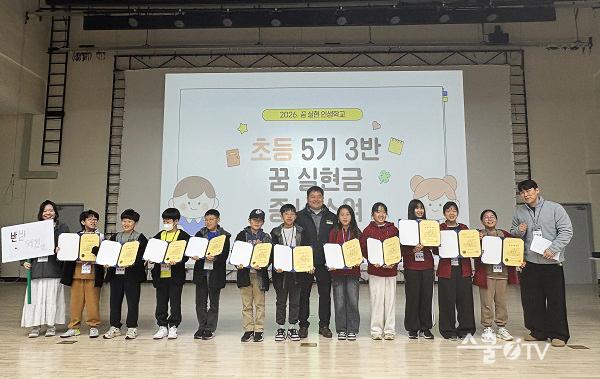 ¼ö·á½Ä¿¡¼´Â Á¤¼ºÈ£ ¿ëÈ£ÁÖ½Äȸ»ç ´ëÇ¥°¡ ±âºÎÀÚ·Î Âü¿©ÇØ Çлýµé¿¡°Ô ¡®²Þ ½ÇÇö±Ý¡¯ Áõ¼¸¦ Àü´ÞÇß´Ù. Á¤ ´ëÇ¥´Â ¡°¾ÆÀ̵éÀÌ ¿Á¤À» °®°í µµÀüÇÏ´Â µ¥ ÀÛÀº ¸¶Áß¹°ÀÌ µÇ±æ ¹Ù¶õ´Ù¡±°í ¸»Çß´Ù.