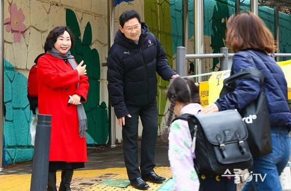 ÀÌ ½ÃÀåÀº ¡°»õ Çб⸦ ¸Â¾Æ ÇлýµéÀÌ ¼³·¹´Â ¸¶À½À¸·Î µî±³ÇÒ °ÍÀ̶ó »ý°¢ÇØ ÅëÇРȯ°æÀ» Á÷Á¢ »ìÆìº¸±â À§ÇØ ÇöÀåÀ» ã¾Ò´Ù¡±¸ç ¡°¾ÕÀ¸·Î ¸ÅÀÏ ¾ÆÄ§ ÇлýµéÀÇ ¾ÈÀüÇÑ µî±³¸¦ À§ÇØ ºÀ»çÇØ ÁÖ½Ç ³ì»ö¾î¸Ó´Ïȸ¿Í Çкθðȸ, ¾î¸£½Å ºÀ»çÀڵ鲲 °¨»çµå¸°´Ù¡±°í ¸»Çß´Ù.