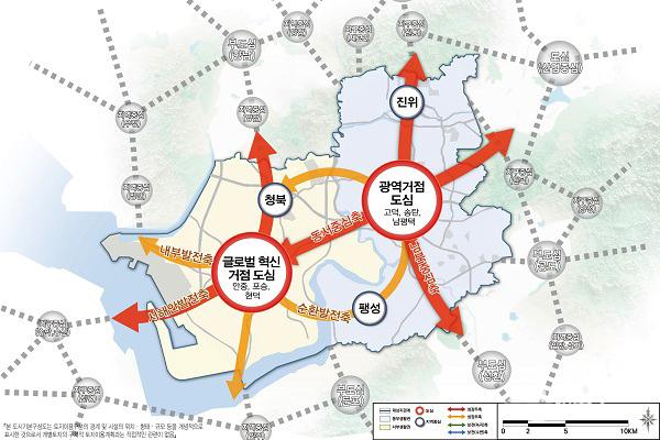 °èȹ¿¡´Â µ¿ºÎ¿Í ¼ºÎ, ¿øµµ½É°ú ½Åµµ½Ã°¡ ±ÕÇü ÀÖ°Ô ¼ºÀåÇÏ´Â µµ½Ã ±¸Á¶¸¦ ±¸ÃàÇØ Áö¿ªº° ¹ßÀü °ÝÂ÷¸¦ ÁÙÀÌ°í ½Ã¹Î ´©±¸³ª °í¸£°Ô ÇýÅÃÀ» ´©¸± ¼ö ÀÖµµ·Ï ÇÏ´Â Àü·«µµ Æ÷ÇԵƴÙ. µ¿ºÎ »ýȰ±ÇÀº ÷´Ü»ê¾÷°ú ¿¬±¸°³¹ß, ±¹Á¦±³·ù Áß½ÉÀ¸·Î, ¼ºÎ »ýȰ±ÇÀº ÆòÅÃÇ×°ú ¿¬°èÇÑ ¹°·ù, ¼ö¼Ò»ê¾÷, ÇØ¾ç°ü±¤ Áß½ÉÀ¸·Î À°¼ºÇÑ´Ù.