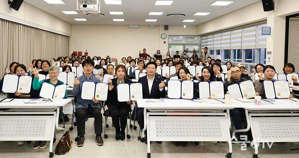 ½Ã´Â À̳¯ ¸¶À»°øµ¿Ã¼Áö¿ø¼¾ÅÍ 2Ãþ ´Ù¸ñÀû½Ç¿¡¼ ÁÖ¹ÎÁ¦¾È °ø¸ð»ç¾÷°ú ÁÖ¹ÎÁÖµµ ¸¶À»¸®ºù·¦ °ø¸ð»ç¾÷¿¡ ¼±Á¤µÈ °øµ¿Ã¼¸¦ ´ë»óÀ¸·Î ÀÎÁõ¼ ¼ö¿©½ÄÀ» °³ÃÖÇϰí ȸ°è ±³À°À» ÁøÇàÇß´Ù.