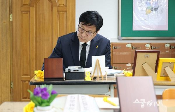 ¾Õ¼ 14ÀÏ¿¡´Â µµ¼ºÈÆ ±³À°°¨À» ºñ·ÔÇÑ ±³À°Ã» °£ºÎµéÀÌ ¡®4¡¤16 ±â¾ï±³½Ç¡¯À» ã¾Æ Âü»ç Èñ»ýÀÚµéÀ» Ã߸ðÇß´Ù. ÀÌ ÀÚ¸®¿¡¼ µµ ±³À°°¨Àº ±³À° ÇöÀå¿¡¼ »ý¸í Á¸Áß°ú ¾ÈÀü °¡Ä¡¸¦ ÃÖ¿ì¼±À¸·Î ½ÇõÇϰڴٴ ÀÇÁö¸¦ ¹àÇû´Ù.