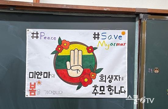 ¶Ç Çб޺° 40¿© °³ÀÇ ¹Ì¾á¸¶ ¹ÎÁÖȿÁöÁö ±ê¹ßÀ» Á¦ÀÛÇØ Çб³ Á¤¹® ´ãÀå¿¡ °Ô¾çÇß´Ù. ±ê¹ßÀº ¹Ì¾á¸¶ ±¹¹ÎÀÇ ¹ÎÁÖÈ ÅõÀïÀÇ »ó¡ ¡®¼¼ ¼Õ°¡¶ô ±×¸²¡¯ µîÀÌ ±×·ÁÁ³°í, Áö¿ª¹ÎµéÀÇ °ü½É°ú µ¿ÂüÀ» ¹Ù¶ó´Â ÇлýµéÀÇ ¼ø¼öÇÑ ¿¸ÁÀÌ »õ°ÜÁ® ÀÖ´Ù.