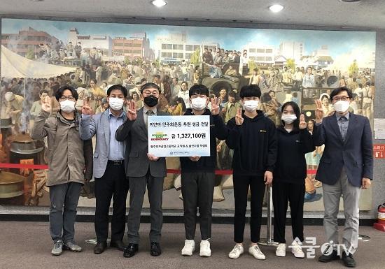 ¼º±Ý Àü´Þ½Ä¿¡¼ ±¤ÁÖÀüÀÚ°ø°í ÇлýȸÀåÀº ¡°ºñ·Ï ÀûÀº ±Ý¾×ÀÌÁö¸¸ ¿ì¸® Çб³ ÇлýµéÀÇ ¸¶À½ÀÌ ¹Ì¾á¸¶ ±¹¹Î¿¡°Ô µµ¿òÀÌ µÇ±æ ¹Ù¶ó°í, ¹Ì¾á¸¶¿¡ ¹ÎÁÖÁÖÀÇÀÇ º½ÀÌ ¹Ýµå½Ã ã¾Æ¿Ã °ÍÀ¸·Î ¹Ï´Â´Ù"°í ¸»Çß´Ù.