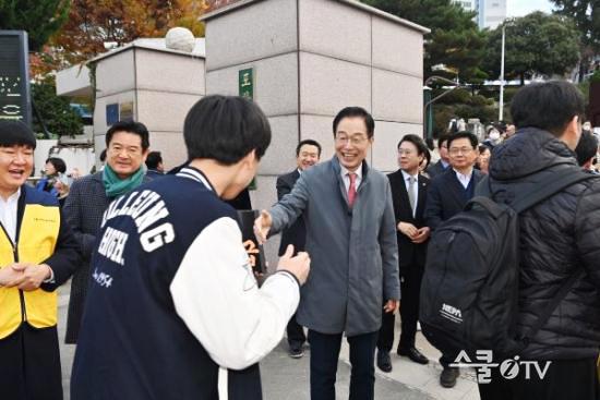 ÀÓ ±³À°°¨Àº ¿ÀÀü 7½Ã°æ Æ÷Ç×°íµîÇб³ Á¤¹®¼ ¼öÇè»ýµéÀ» ¸ÂÀÌÇϸç, ¡°³¡±îÁö ÃÖ¼±À» ´ÙÇϸé ÁÁÀº °á°ú°¡ ÀÖÀ» °Í¡±À̶ó¸ç µû¶æÇÑ ÀÀ¿øÀÇ ¸Þ½ÃÁö¸¦ ÀüÇß´Ù. ±äÀåµÈ Ç¥Á¤À¸·Î ½ÃÇèÀå¿¡ µé¾î¼´Â Çлýµé¿¡°Ô´Â ¡°¼ö°í ¸¹¾Ò´Ù, Æò¼Ò ½Ç·Â ±×´ë·Î ÇÏ¸é µÈ´Ù¡±¶ó¸ç ªÁö¸¸, Áø½É ¾î¸° ÇѸ¶µð·Î ±äÀåÀ» Ç®¾îÁá´Ù.