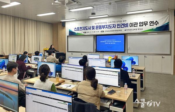 Àü³²±³À°Ã»Àº 15ÀÏ Àü³²±³À°Ã»Ã¢ÀÇÀ¶ÇÕ±³À°¿ø¿¡¼ µµ³» 22°³ ½Ã¡¤±º ±³À°Áö¿øÃ» üÀ°º¹ÁöÆÀ ÀΰǺñ ¾÷¹« ´ã´çÀÚ¸¦ ´ë»óÀ¸·Î ¡®½ºÆ÷Ã÷Áöµµ»ç ¹× ¿îµ¿ºÎÁöµµÀÚ ÀΰǺñ À̰ü ¾÷¹« ¿¬¼ö¡¯¸¦ ½Ç½ÃÇß´Ù.