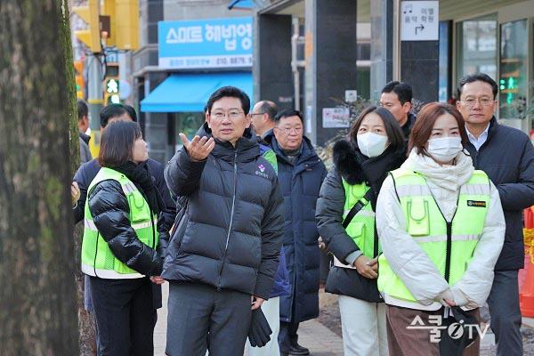 ÀÌ ½ÃÀåÀº Çб³ °ü°èÀÚ¿Í Çкθðµé°ú ÇÔ²² Çб³ Á¤¹® ÀÏ´ë ÅëÇзθ¦ µÑ·¯º¸¸ç ±³Åë¾ÈÀü½Ã¼³ ¿î¿µ ½ÇÅÂ¿Í º¸Çà ȯ°æÀ» Á¡°ËÇß´Ù. ÇöÀå Á¡°Ë °úÁ¤¿¡¼ ÇкθðµéÀº Á×Àüµ¿ 1245-5¹øÁö Àα٠³»¸®¸· ±¸°£ÀÇ Â÷·® °ú¼Ó ¹®Á¦¸¦ ÁöÀûÇÏ¸ç °ú¼Ó¹æÁöÅÎ ¼³Ä¡¸¦ ¿äûÇßÀ¸¸ç, Çб³ Àα٠µµ·Î°¡ ÀÀ´Þ Áö¿ªÀ¸·Î °Ü¿ïö °áºù À§ÇèÀÌ Å« ¸¸Å ÀÌ¿¡ ´ëÇÑ ¾ÈÀü ´ëÃ¥µµ °ÇÀÇÇß´Ù.