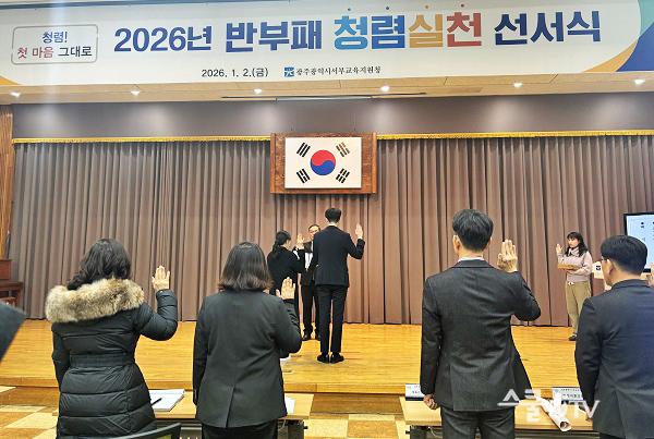 ±¤ÁÖµ¿ºÎ±³À°Áö¿øÃ»Àº À̳¯ ¸ðµç Á÷¿øÀÌ Ã»·Å ¼¾à¼¸¦ ÀÛ¼ºÇÏ°í ³¶µ¶Çϸç, °øÁ¤Çϰí Åõ¸íÇÑ Á÷¹« ¼öÇàÀ» ÅëÇØ ½Å·Ú¹Þ´Â ±³À° ÇàÁ¤À» ½ÇõÇϰڴٴ ÀÇÁö¸¦ ´ÙÁ³´Ù.