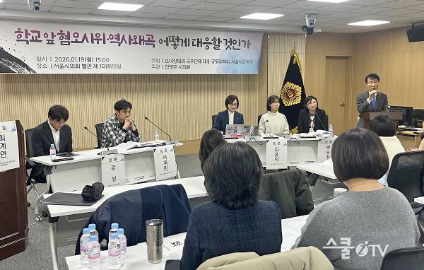 ¼¿ï½ÃÀÇȸ ±³À°À§¿øÈ¸ Àüº´ÁÖ ºÎÀ§¿øÀå(´õºÒ¾î¹ÎÁִ硤±¤Áø1)Àº 19ÀÏ ¼¿ï½ÃÀÇȸ Á¦1´ëȸÀǽǿ¡¼ ¡®Çб³ ¾Õ Çø¿À½ÃÀ§¡¤¿ª»ç¿Ö°î ¾î¶»°Ô ´ëÀÀÇÒ °ÍÀΰ¡¡¯¸¦ ÁÖÁ¦·Î Åä·Ðȸ¸¦ ÁÖ°üÇß´Ù. À̹ø Åä·Ðȸ´Â ¼Ò³à»óÅ×·¯ ±Ø¿ì´Üü ´ëÀÀ °øµ¿´ëÃ¥À§¿øÈ¸¿Í ¼¿ï½Ã±³À°Ã»ÀÌ °øµ¿ ÁÖÃÖÇß´Ù.