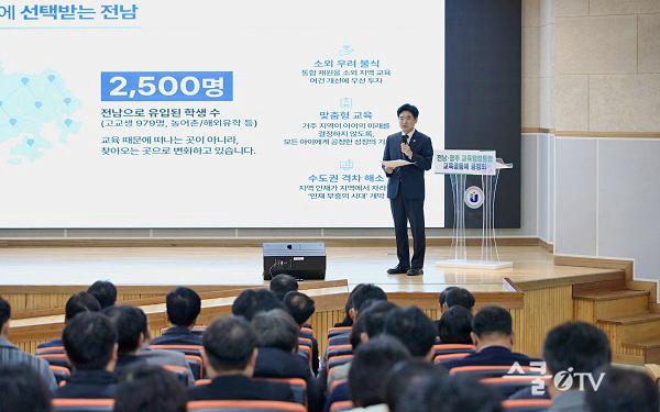 ±è´ëÁß Àü³²±³À°°¨Àº ÇöÀå¿¡¼ ÅëÇÕ ÃßÁø ¹è°æ°ú ÇâÈÄ Á¤Ã¥ ºñÀüÀ» ¼³¸íÇϸç, ¡°ÅëÇÕÀº Áö¿ª °£ ±³À°°ÝÂ÷¸¦ ¿ÏÈÇÏ°í ±³À°ÀÚ¿øÀÇ È¿À²Àû ¿î¿µÀ» ÅëÇØ ±³À° °æÀï·ÂÀ» ³ôÀÌ´Â ¼±¼øÈ¯À» °¡Á®¿Ã °Í¡±À̶ó°í ¹àÇû´Ù. À̾î Çлý Á᫐ ±³À°È¯°æ Á¶¼º°ú ±³À° ¼±ÅÃ±Ç È®´ë µî ÅëÇÕÀÌ °¡Á®¿Ã ½ÇÁúÀû º¯È¸¦ ´Ü°èº° ·Îµå¸ÊÀ¸·Î Á¦½ÃÇß´Ù.