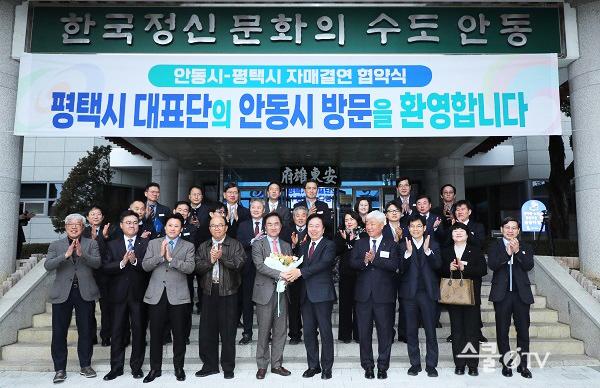 À̳¯ Çù¾à½Ä¿¡´Â Á¤Àå¼± ÆòÅýÃÀå°ú ÀÌÁ¾¿ø ÆòÅýÃÀÇȸ ÀÇȸ¿î¿µÀ§¿øÀå, ±è¿µÁÖ ÆòÅýÃÀÇȸ ±âȹÇàÁ¤À§¿øÀå, ±Ç±â⠾ȵ¿½ÃÀå, ±è°æµµ ¾Èµ¿½ÃÀÇÀåÀ» ºñ·ÔÇÑ ¾ç µµ½Ã °ü°è °ø¹«¿ø°ú ¹Î°£´ëÇ¥´ÜÀÌ Âü¼®ÇØ »óÈ£ ½Å·Ú¸¦ ¹ÙÅÁÀ¸·Î ÇÑ ½ÇÁúÀû Çù·Â ÀÇÁö¸¦ È®ÀÎÇß´Ù.