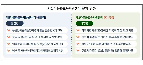 Áö¿ø ÀÎÇÁ¶óµµ È®´ëµÈ´Ù. ±³À°Ã»Àº ±âÁ¸ ³²ºÎ±Ç Áß½ÉÀÇ Áö¿ø ü°è¸¦ º¸¿ÏÇϱâ À§ÇØ Áߺαǿ¡ ¡®Á¦2¼¿ï´Ù¹®È±³À°Áö¿ø¼¾ÅÍ¡¯¸¦ ±¸ÃàÇÒ °èȹÀÌ´Ù. »õ ¼¾ÅÍ´Â AI ±â¹Ý µ¿½ÃÅ뿪 ¼ö¾÷ Áö¿ø°ú ´Ù±¹¾î »ó´ã, Áø·Î üÇè ÇÁ·Î±×·¥ µîÀ» ÅëÇÕ Á¦°øÇÏ´Â °ÅÁ¡ ¿ªÇÒÀ» ¸Ã´Â´Ù. °ø±³À° ÁøÀÔ »ó´ãºÎÅÍ Çб³ ÀûÀÀ ÇÁ·Î±×·¥±îÁö ¿ø½ºÅéÀ¸·Î ¿¬°èÇØ Çб³ÀÇ ÇàÁ¤ ºÎ´ãÀ» ÁÙÀÌ´Â µ¥µµ ÃÊÁ¡À» ¸ÂÃá´Ù.
