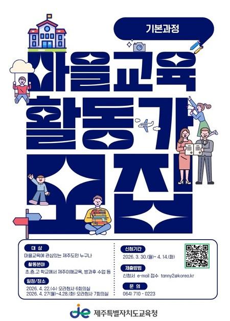 | Á¦ÁÖµµ±³À°Ã», 2026³â ¸¶À»±³À°È°µ¿°¡ ±âº»°úÁ¤ Âü¿©ÀÚ ¸ðÁý |