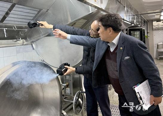 ±×´Â ÇöÀå Á¡°ËÀ» ÅëÇØ ¡°Çб³ ±Þ½Ä Á¶¸®½Ç ȯ°æ°³¼± °ø»ç´Â ¹Ýµå½Ã Àü¹®½Ã°ø¾÷ÀÚ¿¡°Ô ¸Ã°Ü¾ß ÇÑ´Ù¡±¸ç ¡°È¯±â¼³ºñ °³¼±Àº ÀÏȸ¼º¿¡ ±×Ãļ´Â ¾È µÇ°í Áö¼ÓÀûÀÎ Á¡°Ë°ú º¸¿ÏÀÌ º´ÇàµÅ¾ß ÇÑ´Ù¡±°í ¸»Çß´Ù.