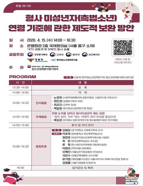 ¾Õ¼ ¿¸° 1Â÷ Æ÷·³¿¡¼´Â ¡®Ã˹ý¼Ò³â Á¦µµ ÇöȲ°ú ¿¬·É ³íÀÇÀÇ ÁÖ¿ä ÀïÁ¡¡¯À» ÁÖÁ¦·Î Çü»çÃ¥ÀÓ´É·ÂÀÇ º»Áú°ú ¼Ò³â¹ýÀÇ ¿ªÇÒ µî ±âº» °³³ä°ú ÁÖ¿ä ÀïÁ¡ÀÌ ³íÀÇµÈ ¹Ù ÀÖ´Ù.