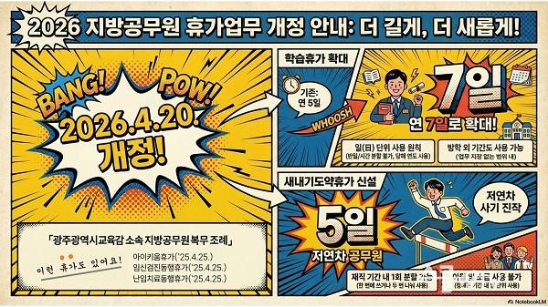 ÇнÀÈÞ°¡´Â ±âÁ¸ ¿¬°£ 5ÀÏ À̳»¿¡¼ ¿¬°£ 7ÀÏ À̳»·Î È®´ëµÆ´Ù. ÇнÀÈÞ°¡´Â °ø¹«¿øÀÇ Á÷¹«¿ª·® Çâ»óÀ» À§ÇÑ ±³À°¡¤¿¬¼ö¡¤ÀÚ°Ý Ãëµæ µî¿¡ Ȱ¿ëµÇ´Â Á¦µµ·Î, À̹ø È®´ë¸¦ ÅëÇØ ÀÚ±â°è¹ß ±âȸ¸¦ º¸´Ù Æø³Ð°Ô º¸ÀåÇÒ ¼ö ÀÖÀ» °ÍÀ¸·Î ±â´ëµÈ´Ù.