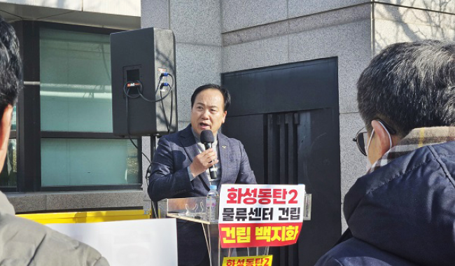 [½ºÄðiTV] À̱ÇÀç ¿À»ê½ÃÀåÀÌ È­¼º½Ã µ¿Åº2½Åµµ½Ã ÃÊ´ëÇü ¹°·ù¼¾ÅÍ °Ç¸³ °èȹ¿¡ ´ëÇØ ¡°¿À»ê°ú µ¿Åº Àϴ븦 ±³ÅëÁö¿ÁÀ¸·Î ¸¸µé °Í¡±À̶ó¸ç »ç¾÷ Àü¸é öȸ¸¦ °­·ÂÈ÷ ¿ä±¸Çß´Ù. ÀÌ ½ÃÀåÀº 17ÀÏ Á¤¿À È­¼º½Ãû ¾Õ¿¡¼­ ¿­¸° Áýȸ¿¡ Âü¼®ÇØ¡¦