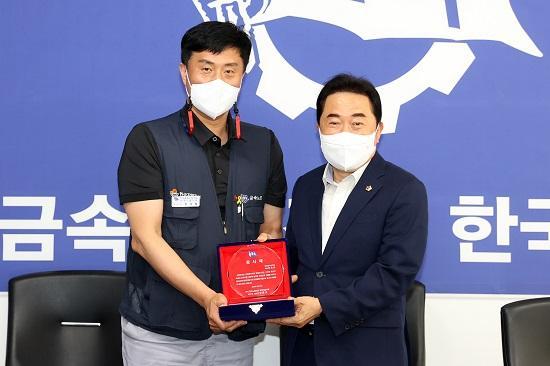 ÀÎõ½ÃÀÇȸ ½ÅÀºÈ£ ÀÇÀå, ±Ý¼Ó³ëÁ¶ Çѱ¹Áö¿¥ÁöºÎ °¨»çÆÐ ¹Þ¾Æ