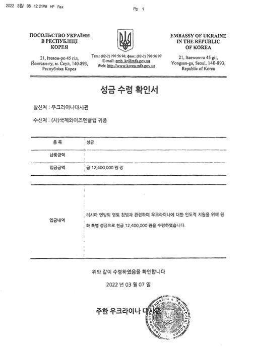 ±¹Á¦¿ÍÀÌÁî¸à Çѱ¹Áö¿ª, ¿ìÅ©¶óÀ̳ª ³­¹Î µ½±â ¼º±Ý 1¸¸´Þ·¯ Àü´Þ