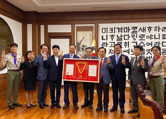 °­Å¼± Çѱ¹½ºÄ«¿ìÆ®¿¬¸Í ÃÑÀç-¹®Èñ»ó ±¹È¸ÀÇÀå '¹«±ÃÈ­ ±ÝÀå' ¼ö¿©