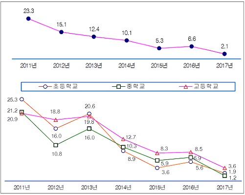±¤Áֽñ³À°Ã», Çб³ ºÎÆÐÀνÄÁö¼ö 6³â ¸¸¿¡ 1/10 ÀÌÇÏ·Î