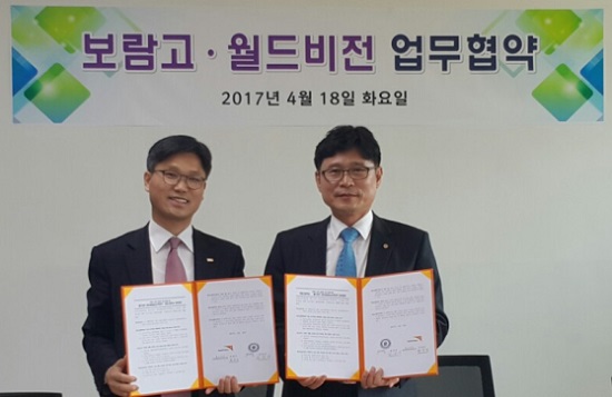 º¸¶÷°íµîÇб³, ¿ùµåºñÀü°ú ¼¼°è½Ã¹Î Çб³ ¾÷¹«Çù¾à ü°á