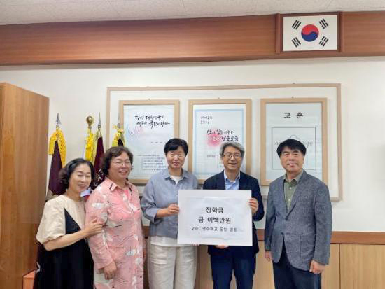 ¿µÁÖ¿©°í 29±â µ¿Ã¢È¸, ¸ð±³¿¡ ÀåÇÐ±Ý Àü´Þ