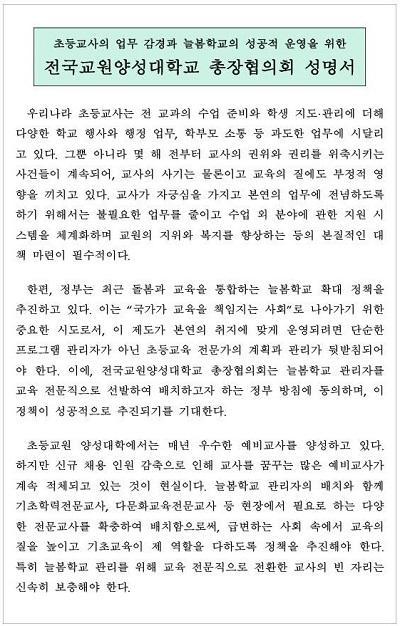 Àü±¹±³¿ø¾ç¼º´ë ÃÑÀåúð, Ãʵ»ç ó¿ì °³¼±°ú ´Ãº½Çб³ ¿î¿µ ¼º¸í¼­