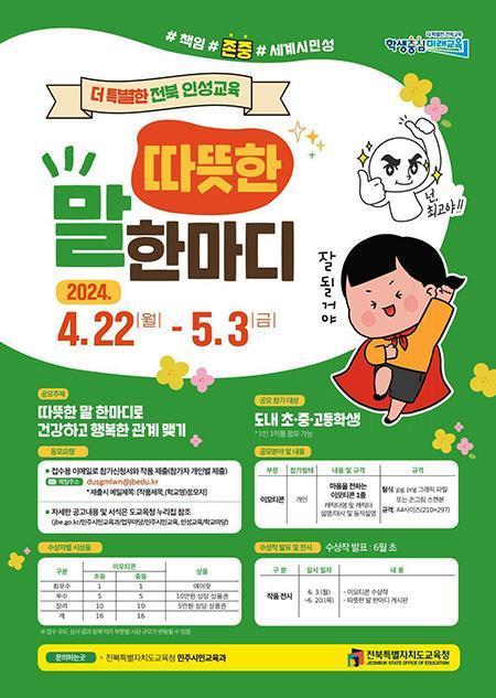 ÀüºÏ±³À°Ã», ¡®µû¶æÇÑ ¸» ÇѸ¶µð¡¯ Àμº±³À° °ø¸ðÀü °³ÃÖ