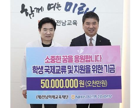 NH³óÇùÀºÇàÀü³²º»ºÎ, Àü³²¹Ì·¡±³À°Àç´Ü¿¡ 5õ¸¸¿ø Àü´Þ