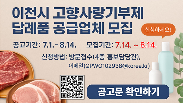 ÀÌõ½Ã, °íÇâ»ç¶û±âºÎÁ¦ ´ä·Êǰ °ø±Þ¾÷ü ¸ðÁý¡¦8¿ù 14ÀϱîÁö Á¢¼ö